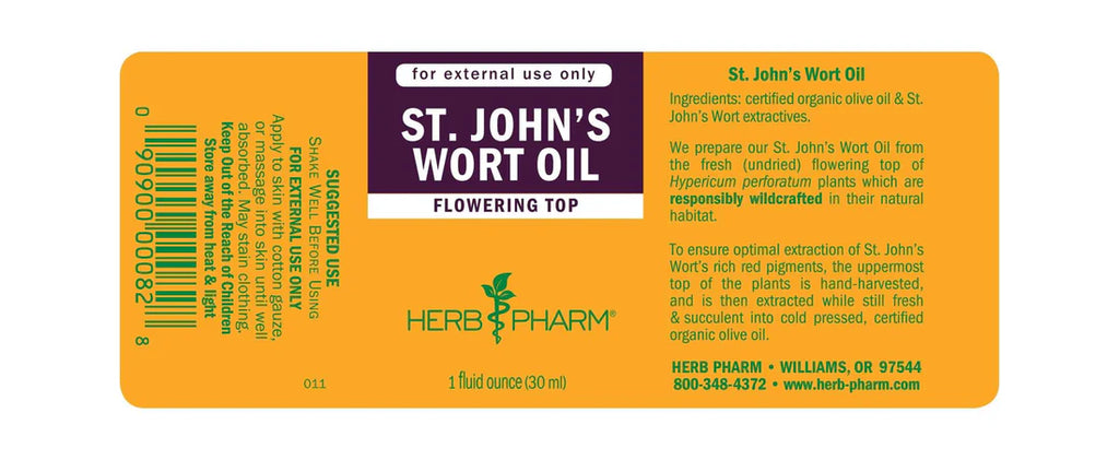 Herb Pharm St. John’s Wort Oil is prepared from small batches of fresh (never dried) flowering tops of Hypericum perforatum plants. Each summer near the solstice, the plants are responsibly wildcrafted in Oregon’s Siskiyou and Cascade mountains in a narrow time frame before the flowers have fully opened, then extracted while still fresh.