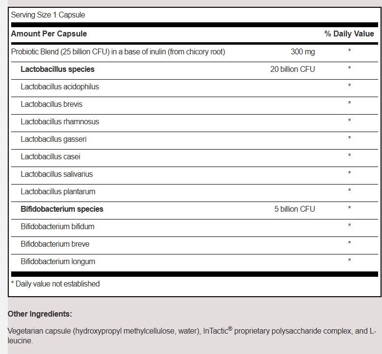 - 10 probiotic species in a potent 25B CFU blend